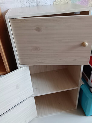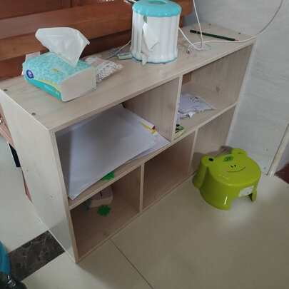 柜子质量很好,板很厚实,安装很简单,不用半小时就搞定了,我是横着放的,跟沙发高度刚好,五格能放很多东西了,关键价格很划算。
