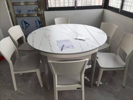?购买爵世佰家的北欧进口岩板组合餐桌货到了,按置在客户很不错,而且是进口材料购买价格实惠,送货速很快,?包装也很精美