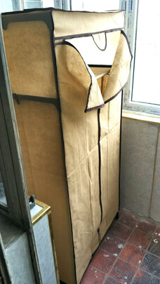 本来想买个木衣柜,但因为是短期使用,看了有布衣柜,但感觉布衣柜太软,最后看中了这个衣柜;快递很快收到,所以零部件都是齐全的,全靠自己组装,整体组装还是比较简单,但因为要卡得很紧,力气小得话,稍微有点吃力,整体来说还是不错的
