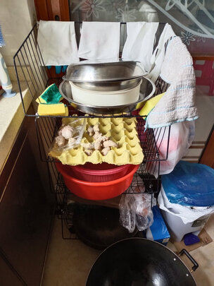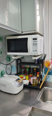很不错的一个置物架,放厨房很省地方,往高处发展,可以放不少杂物,厨房就没那么乱七八糟一大堆东西了,就是薄了一点,总体满意