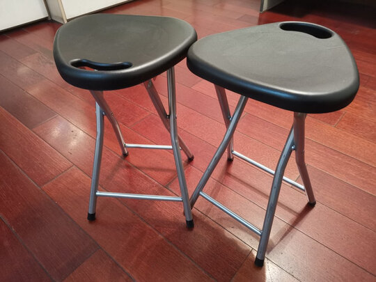 外观样式:比较简洁的外观设计,特别考虑到了拿凳子的抓手。在收放凳子处也设置了限位,打开时听到“咯噔下”就是到位了,收起时需要拉下拉环方可折叠。;舒适程度:简约的凳子,做起来还算考虑人体的舒适度。;尺寸大小:大小很合适,收纳时不占地方。