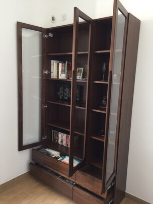 坚固程度:坚固;产品材质:环保;尺寸大小:容量够大,四门书柜,加上我原来的两门书柜基本上书都有家可住了;配送服务:好。师傅安装很认真,装配手艺很好。;其他特色:性价比很高。爱书的朋友可以考虑入手。
