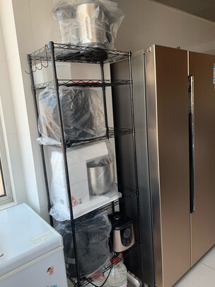 这个架子放在厨房非常的实用,我把家里厨房经常用到的小家电都放在了这个架子上,承重能力还是够用的,很方便,省得总到储藏室搬来搬去,我购买的是5层的,我身高172cm,用起来觉得很方便,即使是最顶层的破壁机杯子拿着也很轻松,安装方便。如放特别重的东西,建议最底层放几桶大矿泉水配重。