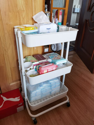 性价比很高的储物架,还有滑轮,移动起来很方便。安装很简单,完全不需要工具,简单动手就可以安装好了,小朋友都可以安装的很好,真的是交代方便。