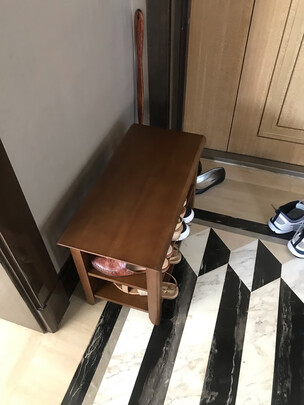 质量不错,放在门口刚刚好。实木,颜色也好,看着很高档,坐上去换鞋也很稳当,没有任何味道,很喜欢。