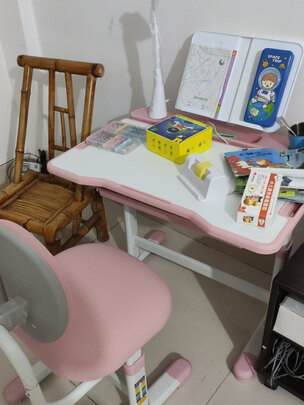 快递员亲自送到家,自己安装了2个小时,粉粉的,小孩特别喜欢,可以调节桌椅高度,和图片描述的一样,没有异味,值得这个价格...