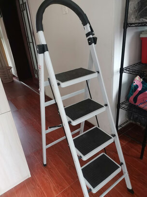 外形外观:正常;承重能力:正常;产品材质:正常;昨天和商家问了好久,终于选了这个。够结实。包装的很好,没有破损和质量问题,打开折叠很轻松,最重要的是够结实,150斤都行,哈哈。站上去稳的很。不晃,这回不怕爬高了。好东西,一分价钱一分货啊。这个给老人用,等搬家了得再买一个。