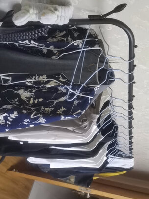 很好用,再也不用堆的沙发上都是了,上面是衣服,下面是裤子,杆上放帽子,口罩,正好;商家也非常好,有一个螺丝拧不紧去,给补发了两次,必须好评