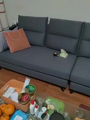 沙发已经坐了一段时间 各方面都很满意 颜色简单大方 坐上去软硬适用 美没有味道 孩子整天在上边滚来滚去 做工挺很仔细 没有任何瑕疵 包装很严实 客服也很有耐心 推荐购买哦