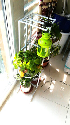 置物架安装很方便,也很牢固,放了好多花。买了两种,个人更喜欢小点的那款,感觉更稳定