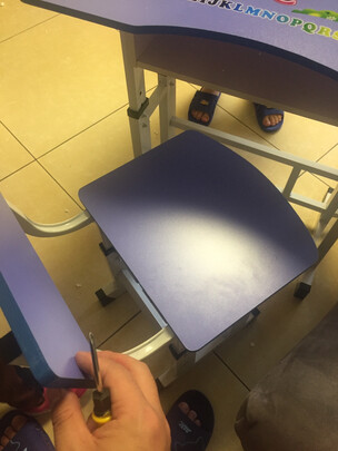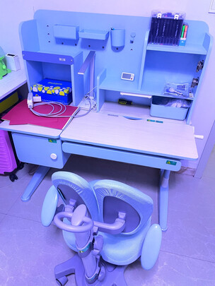 孩子总凑合在大人书桌或者餐桌上写字,总感觉姿势和桌椅高矮都不合适他,于是在京东选购了这一款价格比较不错的单人书桌,意外的是味道还比较能接受,和孩子一起安装的特别有意思。大小基本和学校的课桌椅差不多,赠送的灯我特意用光强软件测了一下,在适合书写范围内,侧面有个挂钩刚好挂书包,竟然还含椅子!真没想到,这个价格感觉性价比很高,我很满意,孩子也很喜欢!