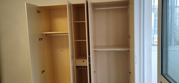 4门卧室柜已经送装完成,2个安装师傅非常认真,组装严谨,保证柜子稳定牢固,为师傅点赞!柜子物美价廉,空间设计合理,我喜欢!