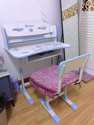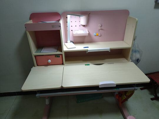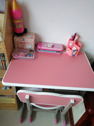 书桌已经收到了,颜色是孩子喜欢的粉色,刚开始不会调高低,看着孩子写字姿势很别扭。后来咨询客服,好多了,这。套书桌可以,想买的可以入手!