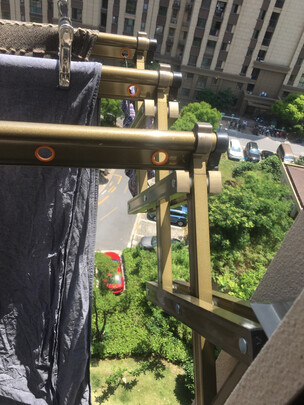 安装在客厅阳台外面,安装完外观很美观,不突兀,可以伸缩收回,试着晾晒了两床杯子,无晃动,承重还是很不错的,老妈很满意,衣服可以经常挂外面沐浴阳光下