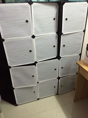 衣柜很结实,能放很多东西,房间瞬间整洁了好多,格子很多容量大,自己安装了两个小时,可以说是女超人了我!?布料厚实,质量很好,小黄服务态度也很好,快递很快就到了,非常实用的衣柜,使用起来方便到位。