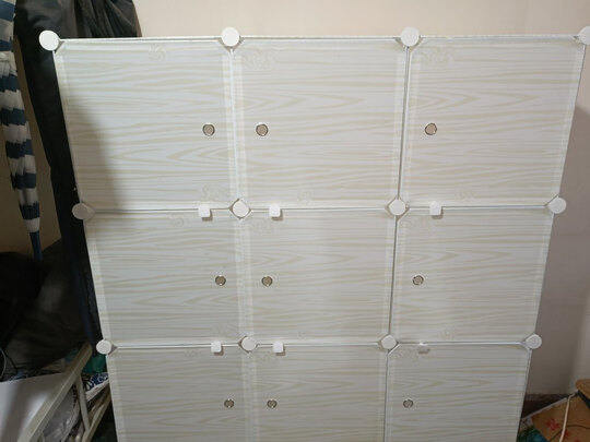 衣柜的材料结实,装好很稳固不会松动,布料颜色也比较好看,使用方便。