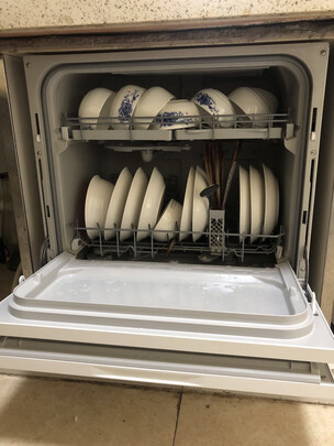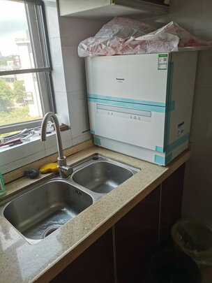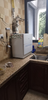 心仪这台洗碗机已久,就趁着活动购入,师傅很快就来安装啦,家里厨房不大,这台式洗碗机放在水槽旁边刚刚好,不算占地,等晚上吃过晚餐来试洗看看效果如何。