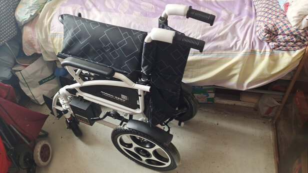 京东物流到货很快,第二天就到货了,到货箱子很大,轮椅拆成了几个部件,需要自己安装,不过安装比较方便,需要接一下三根线,还有安装左右两脚的脚踏板,大概十分钟能安装完毕。老人家70岁,160斤,坐上去调节方向也比较方便,操作比较简单,大概半个小时能操作自如。折叠比较方便,但是两个马达,加上铁框,一个电池搬到小车后箱,一个人抬起来比较费劲。总体来说还是非常满意的,性价比比较高。