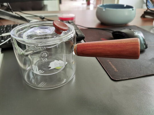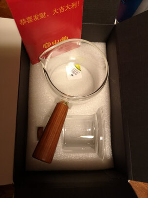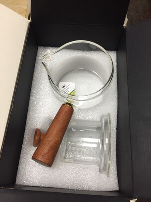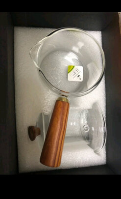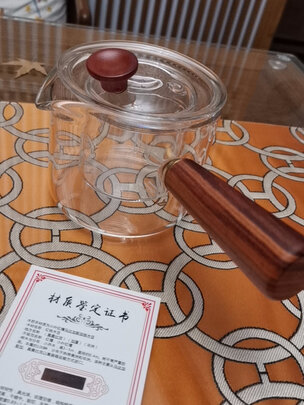 做工品质:玻璃壶做工很精细,木柄和盖纽是实木的,还给了个材料证书(木制品),木柄打磨光滑,手感极佳,手柄位置适中,我住手柄大拇指按压盖纽不费力,刚合适。
