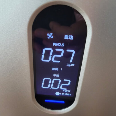 配送速度很快,凌晨抢购,晚上就送达了。产品外观设计精致,体积小,除3档外声音都比较小。空气质量现在肉眼可见了,pm2.5和甲醛通过数值实时反映,刚开机的时候还是蓝色,没一会儿就变紫色了,希望净化效果真实有效。