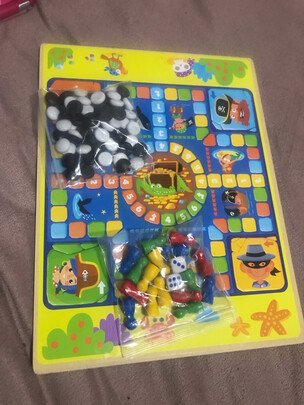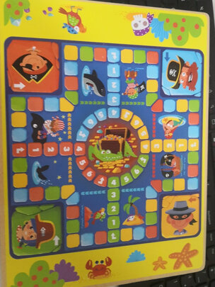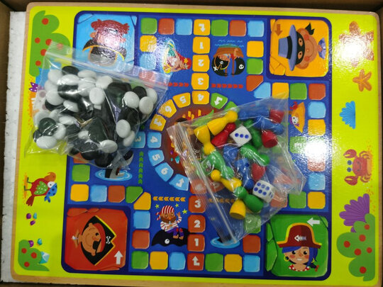 颜色鲜艳图案也很漂亮,很好玩,孩子很喜欢,就是飞行棋不是很会玩,是木板板,质量很好比较厚实,五子棋孩子一学就会了,就闹到一起玩,不错!
