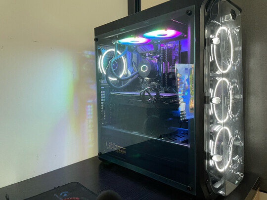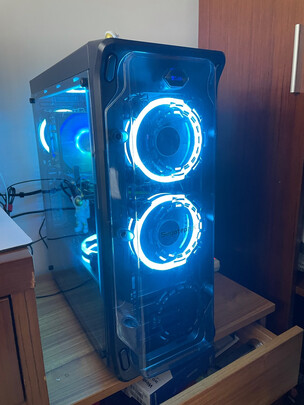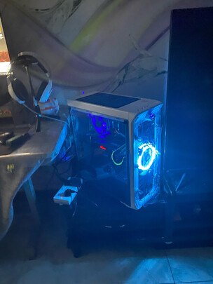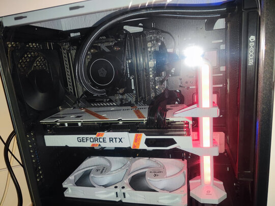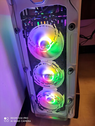 机箱还是挺帅的,配上白色显卡挺好看,不过其它配件不是白色,底部风扇安装需要自己扩孔,费了好大劲一个半小时的成果,还行,