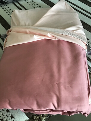 粉色的很滑,盖上有点凉但很快暖了,佳佰这套还是适合夏天用吧。