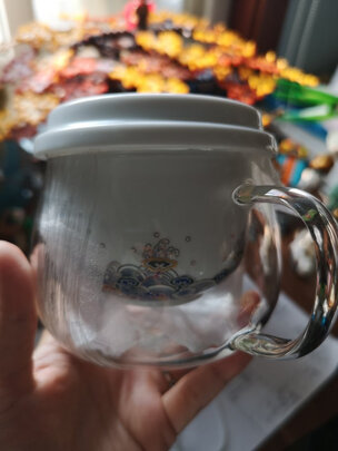 杯子比较漂亮很有文化感,杯子的大小相当于一个常见大小的西红柿或者苹果什么的,容量很适合一个人饮用,瓷和玻璃感觉很单薄,很脆。感觉这次购物不是特别满意,价格不太美丽。