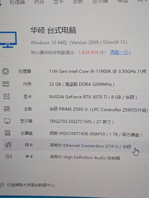 速度好快,还以为要晚几天,结果现已经到货,安装完成,只需要装显卡,非常方便。评分180万。配置以及机箱如下图,基本没声音。