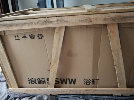 很漂亮的浴缸。包裹是用木架子,很结实。釉面光滑,造型美观。缸底有可调节螺丝使其稳定。包安装,师傅态度很好?。
