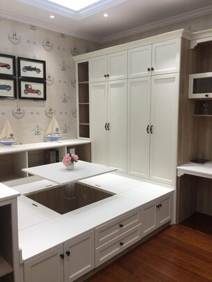 房间太小咯,照不了全景,设计师的设计想法太让我满意了,我家孩子在他自己的卧室学习玩耍两不误,大人也有陪读的空间。?比起看的其他品牌价格是要高一点点,但是环保??好设计好,我这钱花值了。?