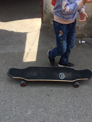 这个滑板质量不错,孩子挺喜欢的,滑板长度105厘米,纯黑色,滑板后面贴了送的贴纸,挺好看的,简单大方。送了护具,大孩子已经用不上了。对于爱运动的孩子,练滑板真不错,练就平衡能力,希望孩子能滑出花样,滑出自我。