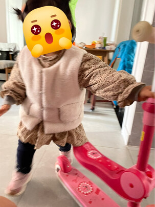 好看而且很稳,一岁四个月的娃可以坐着滑,但是坐着滑的时候脚老是碰到前轮?