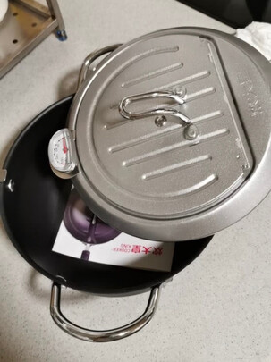 最加分的是盖子,掀开可以把刚炸好的放上去沥油,卡槽设计不会流的到处都是。还有那个温度计,太方便了!