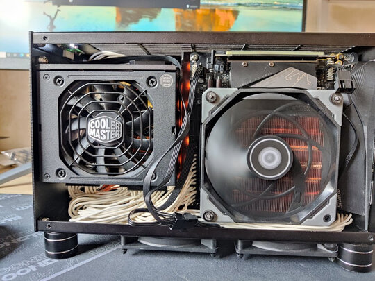 itx背靠背机箱无风道,使用转向架改变散热器方向,使用转接架更换12cm风扇,但之前的内存条挡风扇,找到了科赋的,准备买8*2g,结果有免息券,直接上16*2。没超,只开xmp运行。