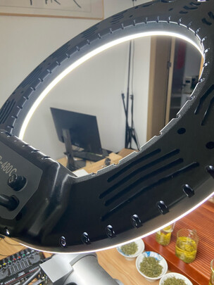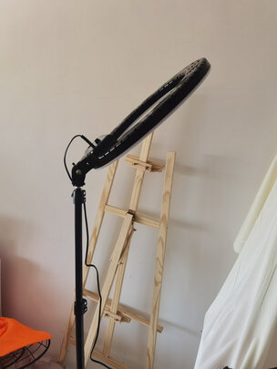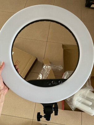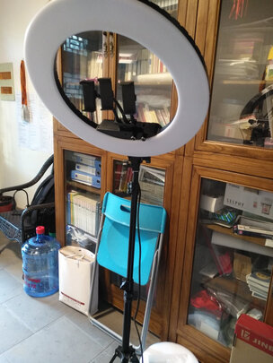 这个是比较大的,我们是用来补点镜头前面的光的,价格有点偏贵,物件还算齐全,用手机直播的挺方便的,手机有物件直接架在中间,可以调节亮度。