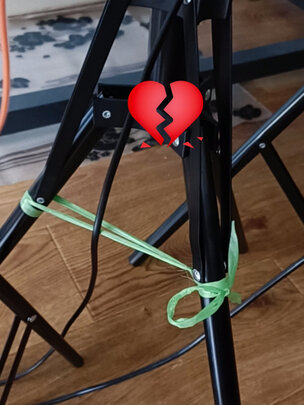 这灯最大的特点就是腿脚不灵,第一次收到货。一条腿没接上,返回重发,换完腿脚还是有点瘸?自己绑上了??