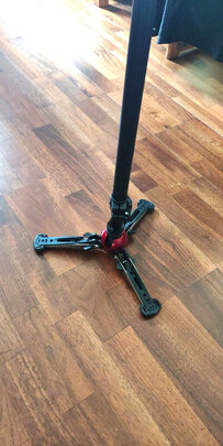 很有质感,脚底有锥子,特别扎实,伸展最高180公分多,阻尼效果好,高低角度可调节。
