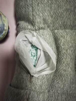 出乎意料的舒服,非常的柔软,而且不会有什么声音,也没有什么气味,中间有一小坨如图是蓝色的小管子,睡起来的感觉不是那么的软,对脖子起到了很好的支撑,总之很舒服,比之前买的乳胶枕头确实舒服一些