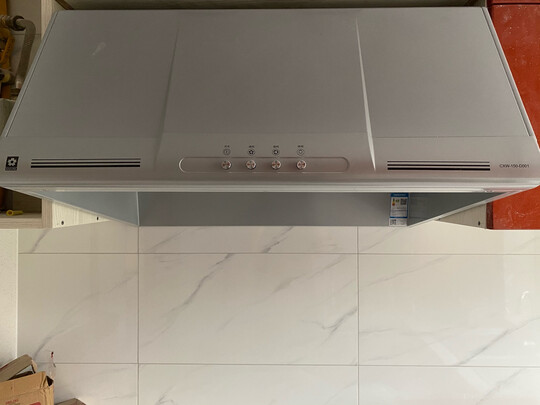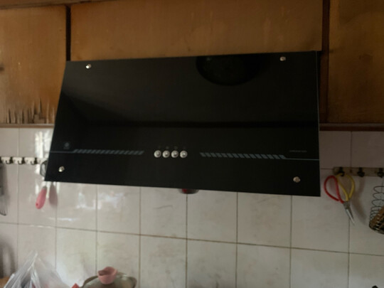 抽油烟机刚刚装上,吸力很大,效果非常好。我觉得抽油烟机还是中式的好用,毕竟炒菜为主,油烟大。外观可能不如西式抽油烟机那么好看,但是家用,效果最重要。
