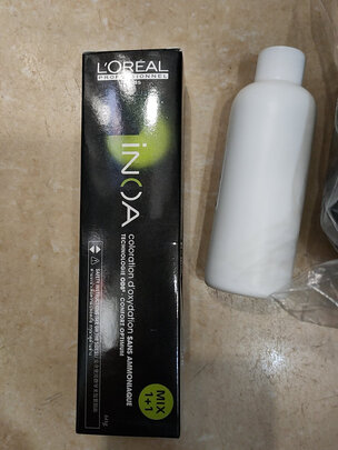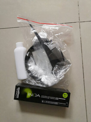 一开始还有点犹豫,最后配好,涂上,味道不重,贴心的工具包,耳朵套,薄膜,42分洗掉,白发没了,头皮还好没伤,就是头发变硬了