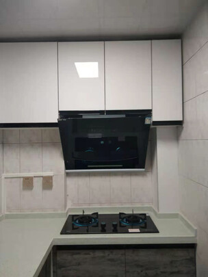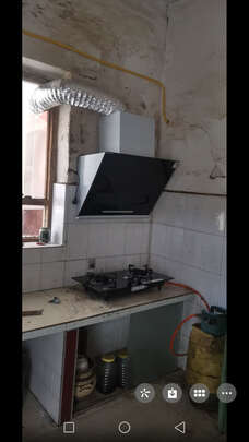 油烟机已安装好,声音小吸力大,操作简单方便。
