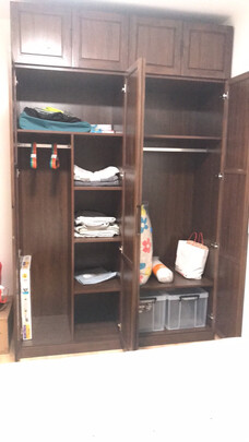 和家里的床颜色挺配的,四门衣柜也足够大,很能装。
