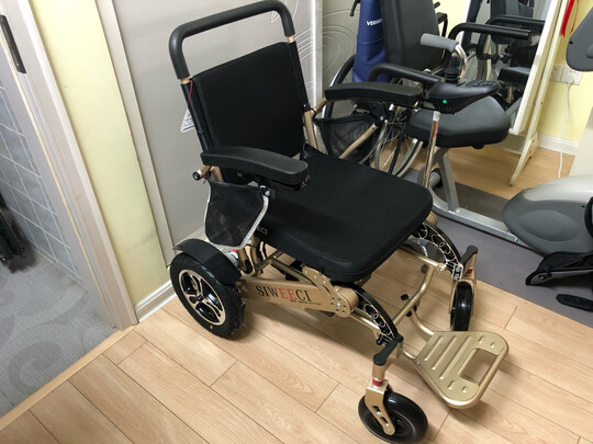 京东快递太快了,头天下午下单,第二天中午就收到了。此款电动轮椅质量很好,折叠起来操作简单。试着行驶_下,电机很静音,转向灵活,操作简单,非常完美。