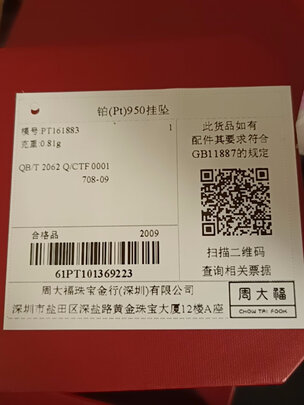 - 商品名称:周大福铂金吊坠