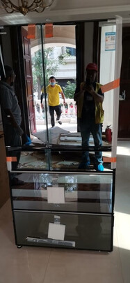 冰箱太大门小了进不来,售后急忙安装师傅过来下冰箱门才可以进来,辛苦售后师傅和送货的师傅一起帮忙拖进来,很大的工程,冰箱实在是太美了,空间特别大,除了贵没毛病?