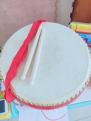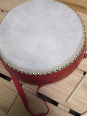 商品已收到,京东购物非常省心,快递员服务态度好,送货非常快,头天下单,第二天就到了,这款大鼓非常适合小朋友玩耍,宝宝升中班了,作为生班礼物,送给我的宝贝,儿子非常喜欢,这款大鼓质量非常好,牛皮纯正牛皮,非常结实,适合三到六岁的宝宝,五星好评,十分满意,推荐大家购买!