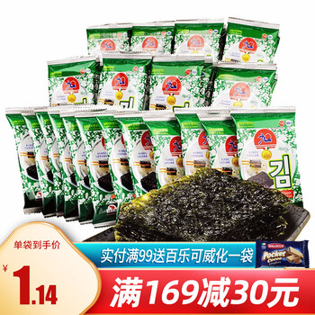 会员日买的,孩子一直喜欢吃这个牌子的海苔!价格优惠,量也足,很好吃!脆脆的,偶尔孩子不想吃米饭,就给他用一小片海苔抱起来,然后让他卷米饭吃,非常喜欢这样吃,不知不觉半碗米饭下肚了!哄孩子的最佳健康小零食!