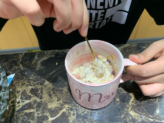 买了早饭泡牛奶的,非常方便好吃,营养丰富