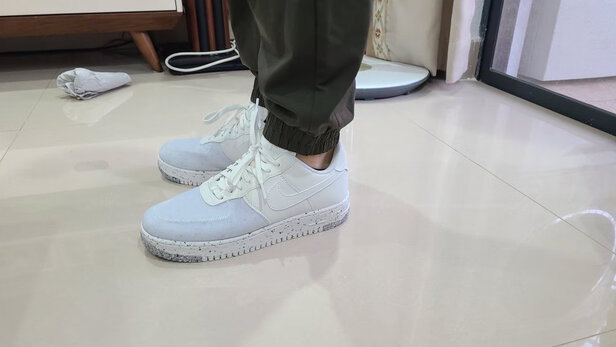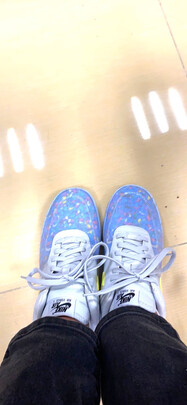 外形外观:很夏天的颜色,小清新,一直很喜欢这个环保材质的,整个系列价格中等,但是能很好贯彻环保理念,穿着很舒适,我认为属于s级的af1,做工整体挺好,无瑕疵